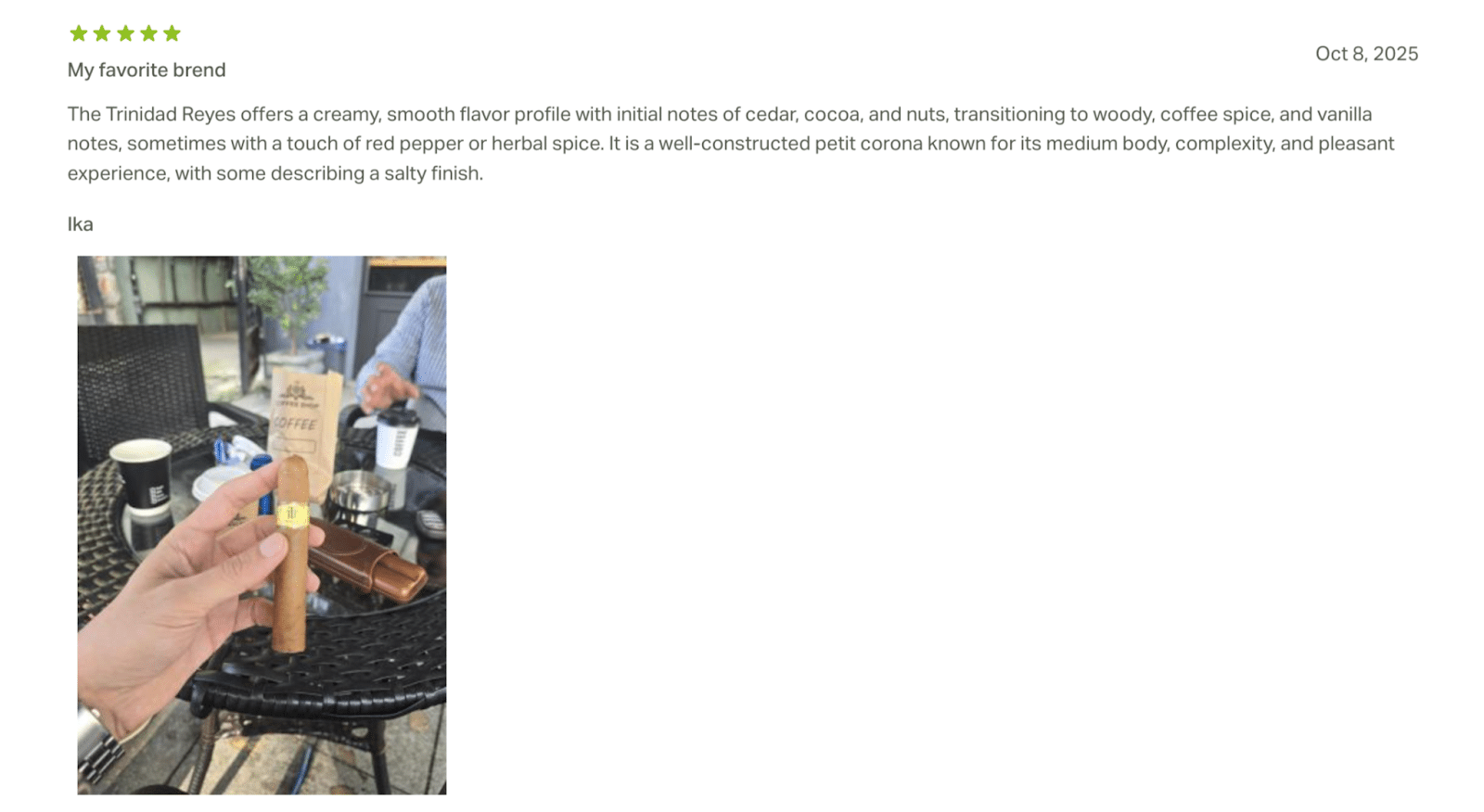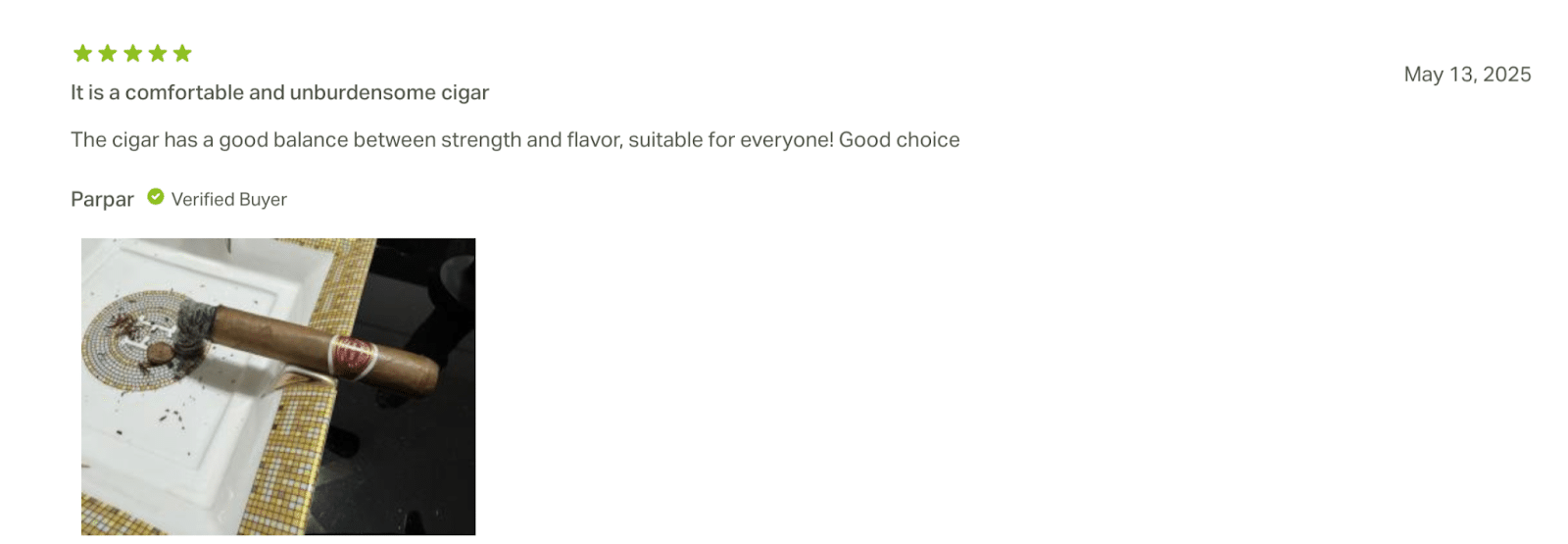 - User Reviews: You can feel more comfortable selecting a specific cigar when you’ve got ‘social proof’. In other words, recommendations from other (but more experienced) smokers, which we’ve included.