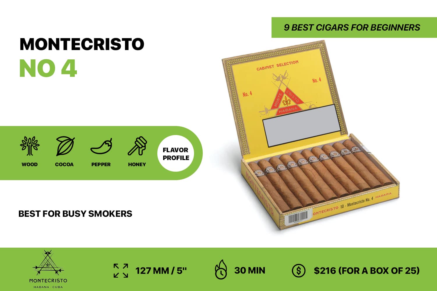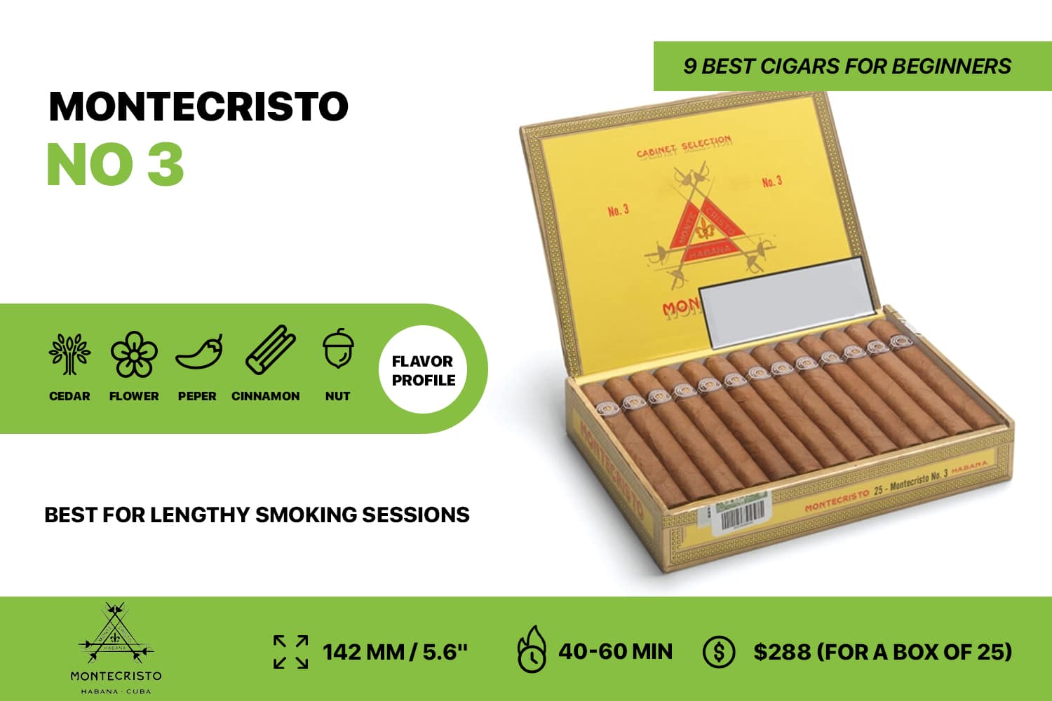 - Why it’s a great fit for beginners: The No 3 is one of Montecristo’s mildest smokes. It’s also a fuss-free solution, as it lights easily and burns evenly. It’s got a good draw, too.