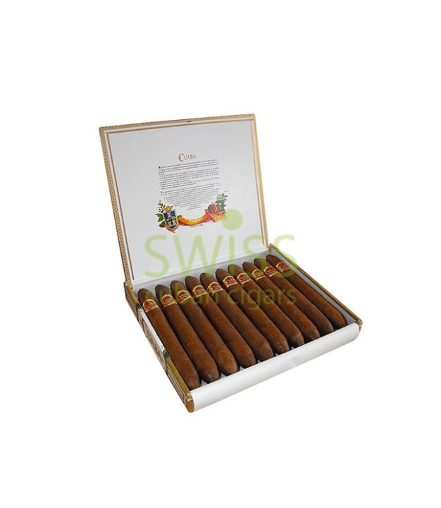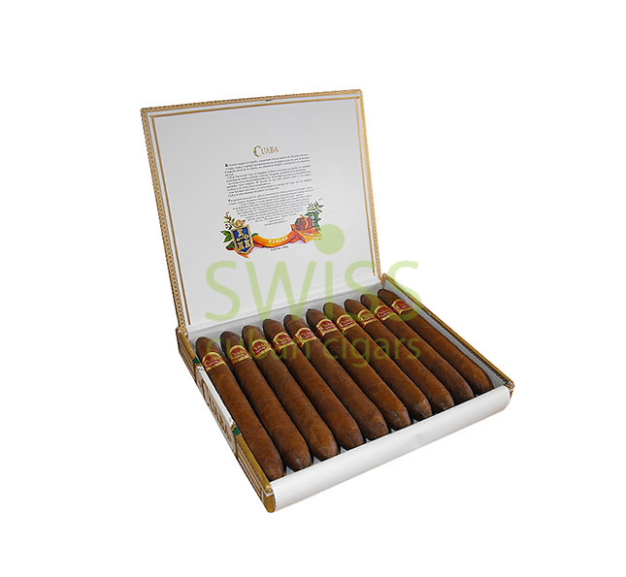 The brand was founded in 1996 in Cuba and the name comes from a plant that was used to light up the tobacco. Cuaba Salomones cigars have an elegant Double Perfecto shape, a large length and a gauge size of 57, making them some of the largest cigars on the market. The exterior has a deep brown color and an impeccable hand-made touch. The overall strength of the cigar is medium to full and the notes palette displays creamy wood, natural tobacco and hints of spice.