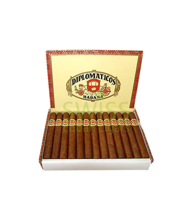 Being founded in 1966 in Cuba, Diplomaticos is a brand of history, tradition and quality. Diplomaticos No.4 cigars have a marvelous Petit Corona shape, a medium length and a gauge size of 42. The wrapper has a natural brown color and a silky touch that shows the premium hand-made work of the Jose Marti factory. The overall strength of the cigar is medium and the notes palette displays natural tobacco, pepper, leather and earth. The cigars come in an elegant box of 25.