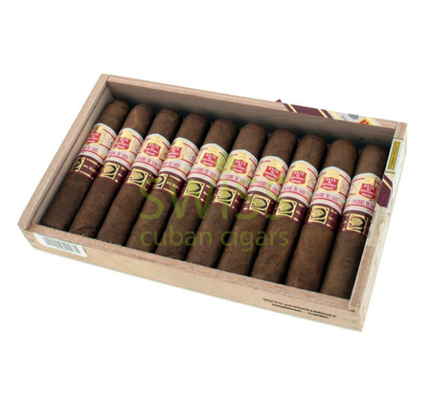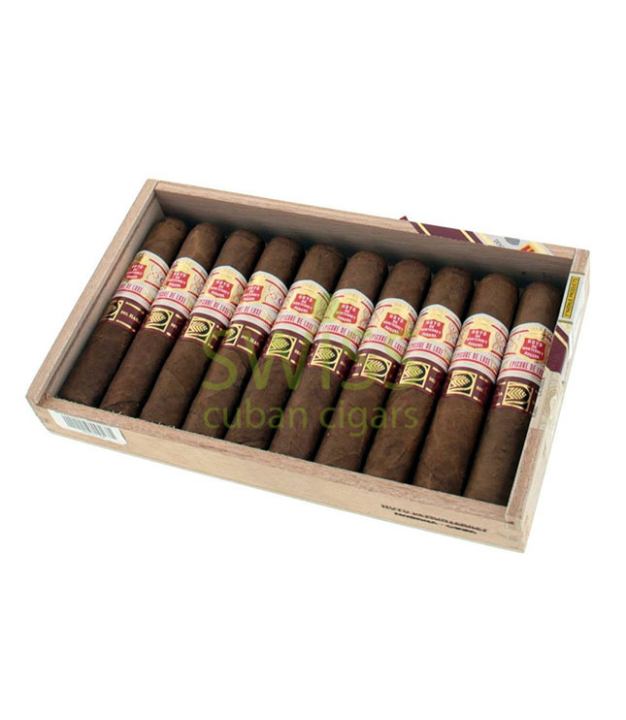 Hoyo de Monterrey Epicure de Luxe cigars are an exclusive production for La Casa del Habano. The cigars have a Petit Robusto shape, a short length and a gauge size of 52. The overall strength is light and all the cigars are hand-made from the top Vuelta Abajo tobacco. The exterior has a natural brown color and a silky touch. The notes bouquet is very fine and it features spice and notes of sweetness. The cigars come in a beautiful sliding wooden box of 10 pieces.