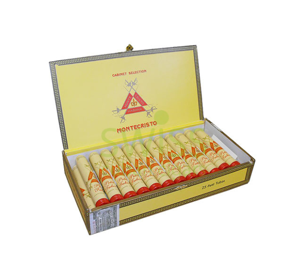 Montecristo Petit Tubos cigars come in beautiful yellow aluminum tubes that are used in order to preserve the aroma. The cigars have a classic Mareva shape, a short length and a gauge size of 42, making them perfect for a quick smoke. The cigars have a beautiful brown exterior and an impeccable finish that shows the premium hand-mad work. They are made from the finest Vuelta Abajo tobacco and the overall strength of the cigar is medium. The flavor bouquet makes this cigar a true delight, displaying cedar, pepper, earth and espresso that mix into a perfect blend.