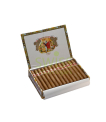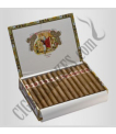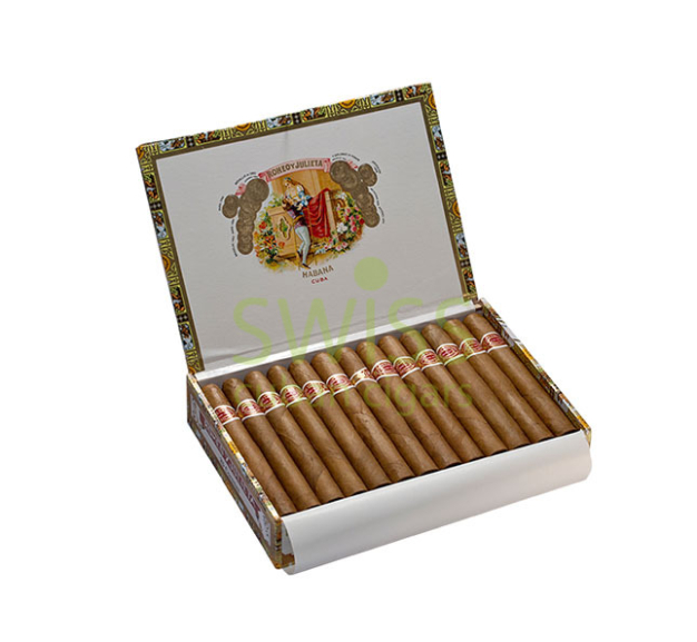Romeo y Julieta Coronas cigars come in a very elegant white box of 25 that has premium decorations and design. The cigars have a Corona shape, a medium to large length and a gauge size of 42. The exterior has a rich brown color and a smooth touch that shows the premium hand-made work of the Romeo y Julieta factory. The tobacco comes from Vuelta Abajo region and the overall strength of the cigar is medium. The notes palette features natural tobacco, cedar and echoes of spice.