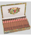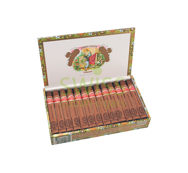 The brand was founded in 1875 in Cuba and it was one of the favorites of Winston Churchill. Romeo y Julieta Coronitas en Cedro cigars come wrapped in cedar and they have a Mareva shape, a short length and a gauge size of 40. The exterior has a rich brown color and a silky touch. The draw and the construction are excellent, showing the top quality hand-made work. The overall strength of the taste is medium and the flavors are natural tobacco, nut, vanilla, coffee and pepper.