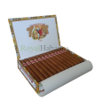 Romeo y Julieta No.3 come in a beautiful box of 25 and the cigars are packed in elegant white and red aluminum tubes in order to protect the aroma. The cigars have a Petit Corona shape, a short length and a gauge size of 40, being perfect for a quick Cuban experience. The cigars are hand-made from the famous Vuelta Abajo tobacco. The exterior has a marvelous brown shade and a smooth feel. The notes present are wood and rich natural tobacco.